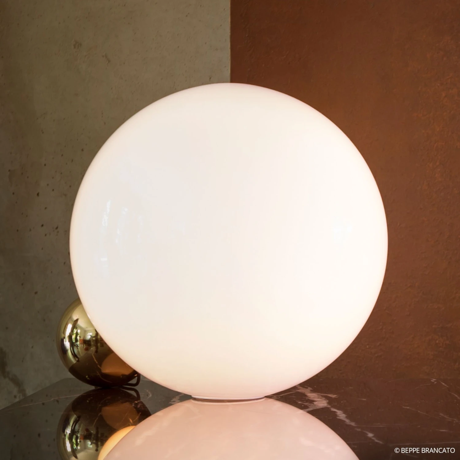 Copycat – eine Tischleuchte des Designers Michael Anastassiades – besteht aus einer großen und einer kleinen Kugel, die sich berühren. Die große Kugel aus geblasenem Opalglas wird von der kleinen, anliegenden Kugel aus 24 Karat vergoldetem Metall, in der die LED-Lichtquelle verbaut ist, beleuchtet. Dadurch entsteht blendfreies, homogenes Licht. Damit ist Copycat eine Tischleuchte, die nicht nur in ihrer Optik, sondern auch in ihrer Lichtwirkung eine Besonderheit darstellt. Über einen Dimmschalter, der sich an der Zuleitung befindet, kann die Helligkeit der Tischleuchte reguliert werden.