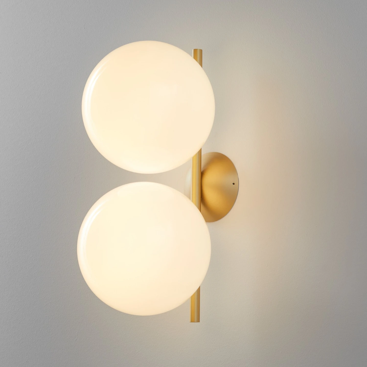 Hochwertig und zeitlos erstrahlt IC Lights Double als ausgewogene Wandlampe mit zwei opalfarbenen Glaskugeln. Diese sorgen nicht nur für blendfreie Beleuchtung, sondern auch für eine gleichmäßige Ausleuchtung der Räumlichkeit. Gepaart mit dem eleganten Metall gibt IC Lights Double eine vornehme Farbkombination ab, die zu vielen Stilrichtungen passt. Auch als Deckenleuchte – zum Beispiel in schmaleren Räumen wie Fluren – kann IC Lights Double hervorragend eingesetzt werden.
