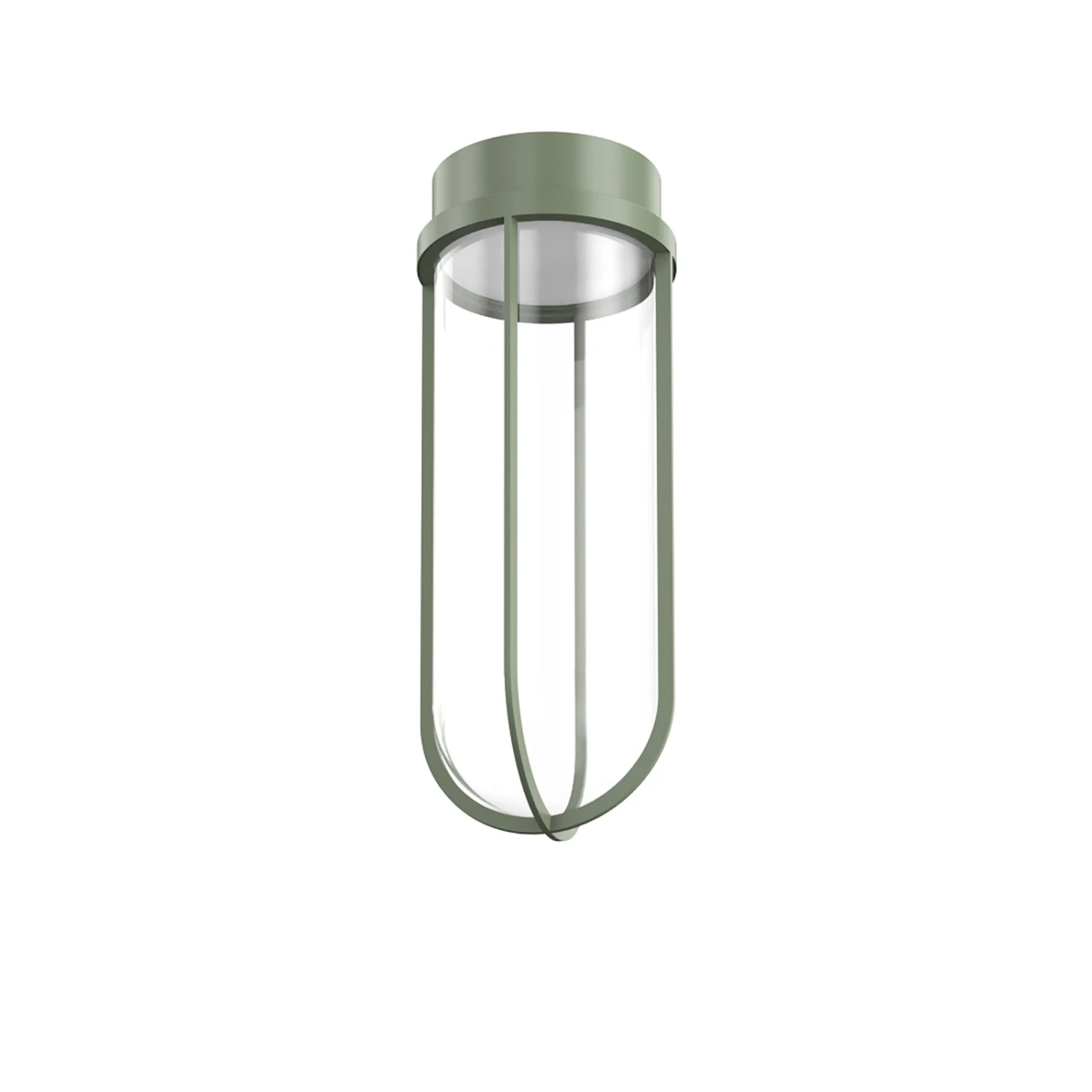 Aus druckgegossenem und stranggepresstem Aluminium ist der äußere Leuchtenkörper der robusten und hochwertigen LED-Außendeckenleuchte In Vitro von Philippe Starck aus dem Hause FLOS gestaltet. Im Inneren befindet sich ein klarer Borosilikatglaskörper, der so aussieht, als sollte er das Leuchtmittel schützen. Aber was früher einmal als Schutzglas für die Glühbirne eingesetzt wurde, ist heute nur noch dekoratives Accessoire, denn In Vitro ist mit festverbauten LEDs ausgestattet, die sich im oberen Bereich der Leuchte hinter einem opalen Diffusor befinden.