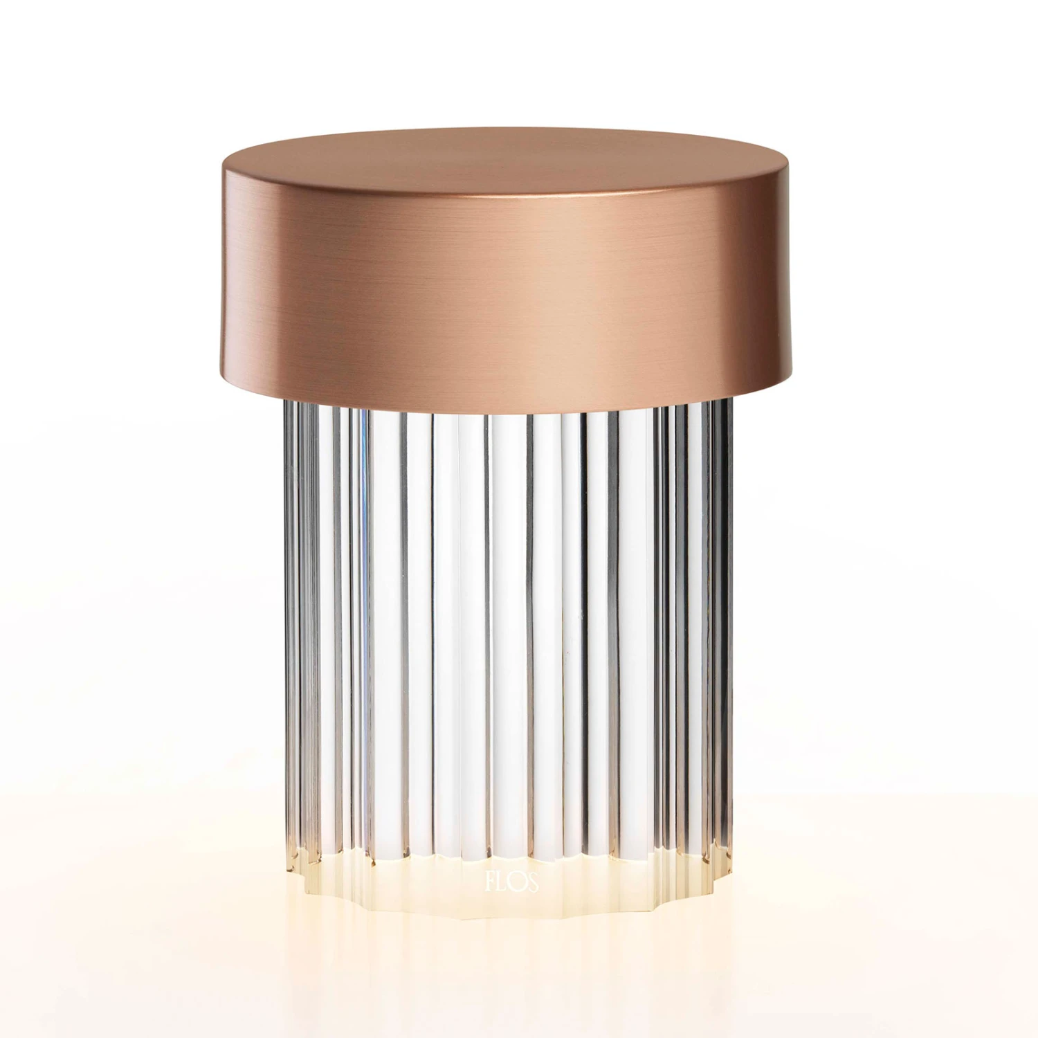 Die Kombination aus dem metallfarbenen Deckel sowie dem geriffelten Kunststofffuß ergibt eine ganz besondere Komposition. Das Licht, welches durch eingebaute LEDs im Deckel entsteht, scheint indirekt in begrenztem Umkreis und entwickelt durch die geriffelte Form des Kunststoffs eine reflektierte, besondere Atmosphäre. Eine integrierte Batterie lässt im Innenbereich keine Wünsche der Verwendung offen und kann hier als Ambientelicht im Wohnbereich sowie als Tischleuchte auf einen Rundtisch eines Restaurants wunderbar seinen Flair versprühen.