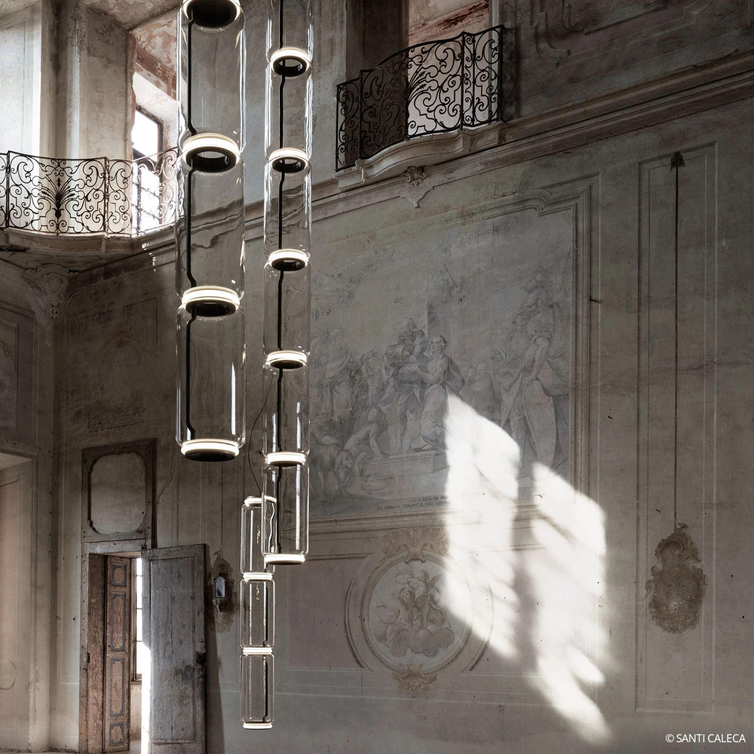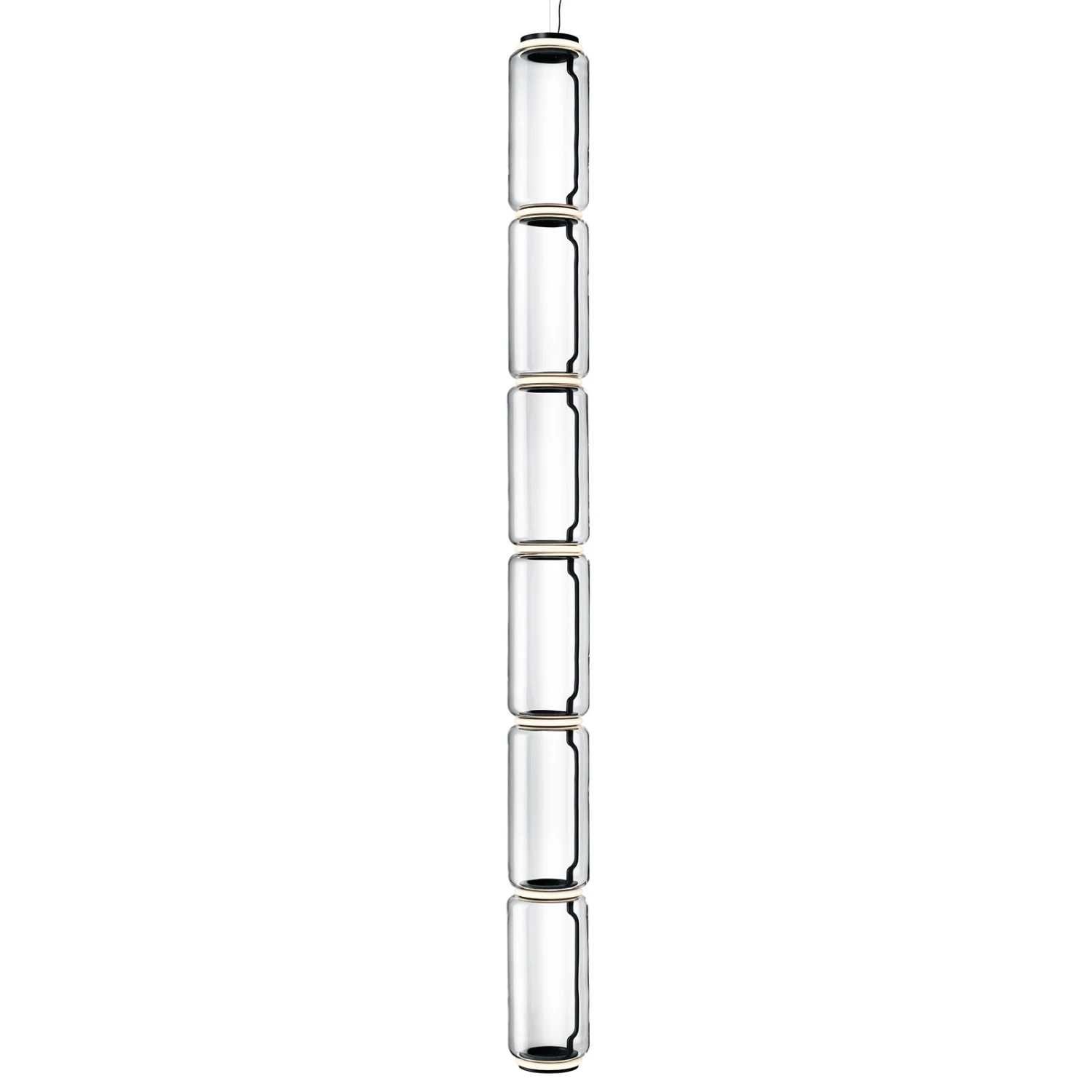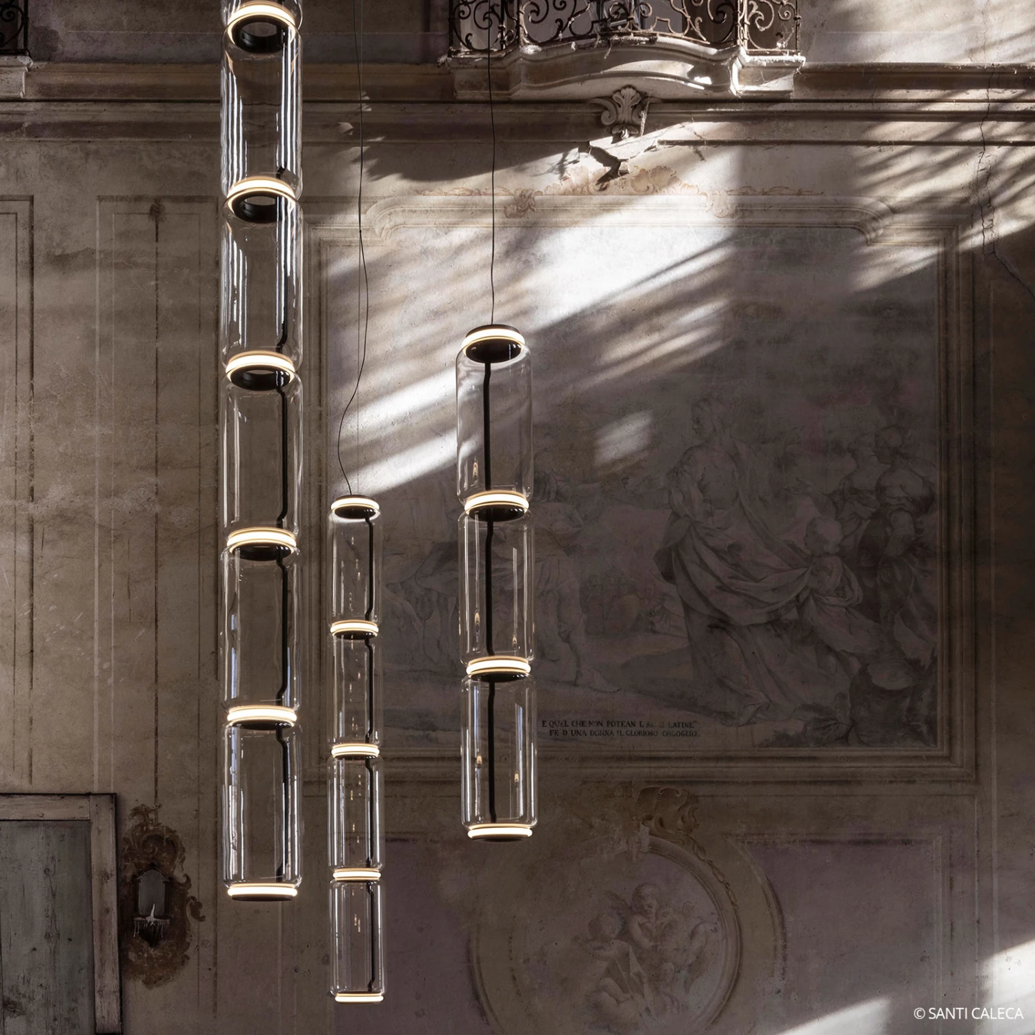 Der Designer Konstantin Grcic hat in Kooperation mit dem italienischen Leuchtenhersteller Flos die LED-Hängeleuchte Noctambule entworfen und setzt einzelne, zylindrische Glaselemente aus mundgeblasenem, transparentem Glas übereinander. Unterbrochen wird das Glaskonstrukt durch schmale, ringförmige Silikondiffusoren in opalweißer Farbe, unter denen sich die exzellent kalibrierte LED-Beleuchtung verbirgt. Die transparente Gestaltung lässt Noctambule eher unscheinbar wirken und integriert sich optimal in den Raum. Nicht nur in privaten Wohnräumen und hohen Eingangsbereichen, sondern auch im Hotelambiente kann die Hängeleuchte in ihrer Gesamtheit erstrahlen und jeden Betrachter verzaubern.