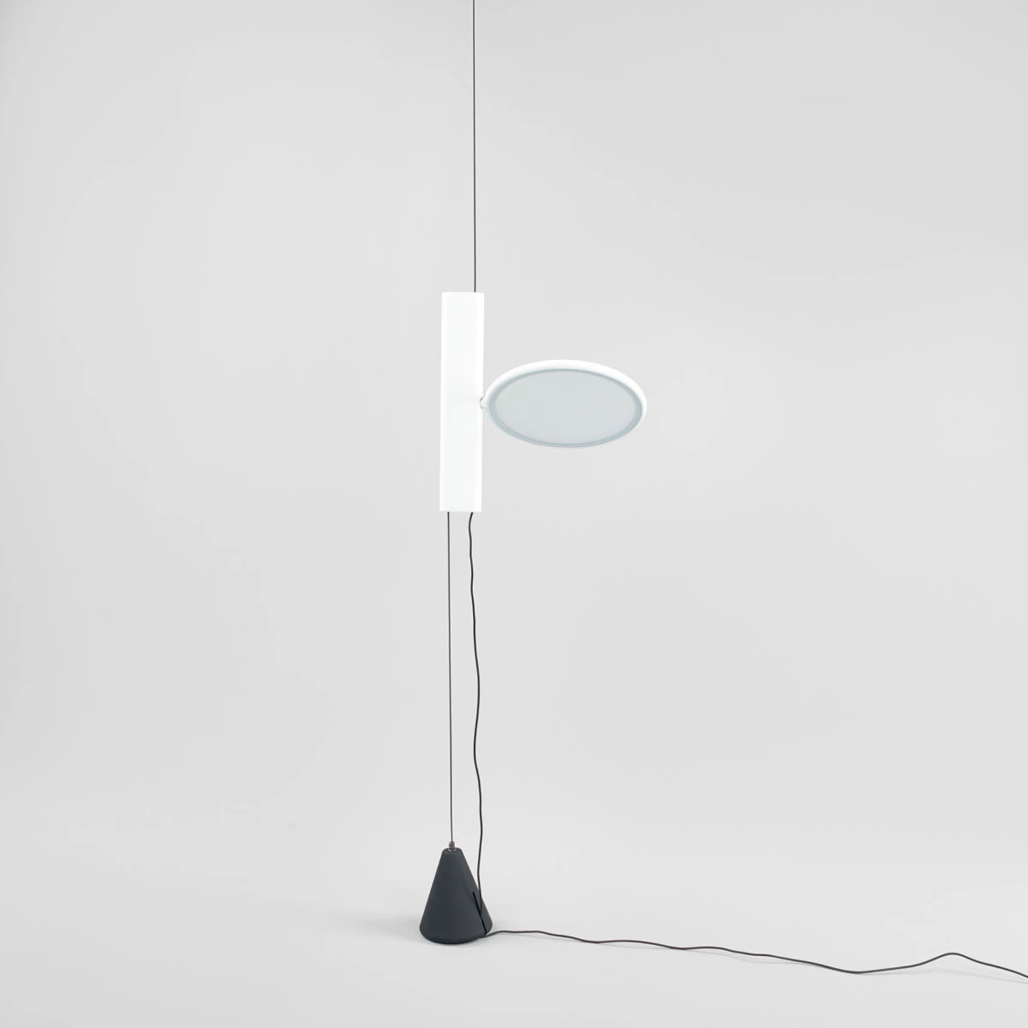 Ein ganz außergewöhnliches Lichtobjekt: Die LED-Hängeleuchte OK ist halb Hängeleuchte und halb Stehleuchte