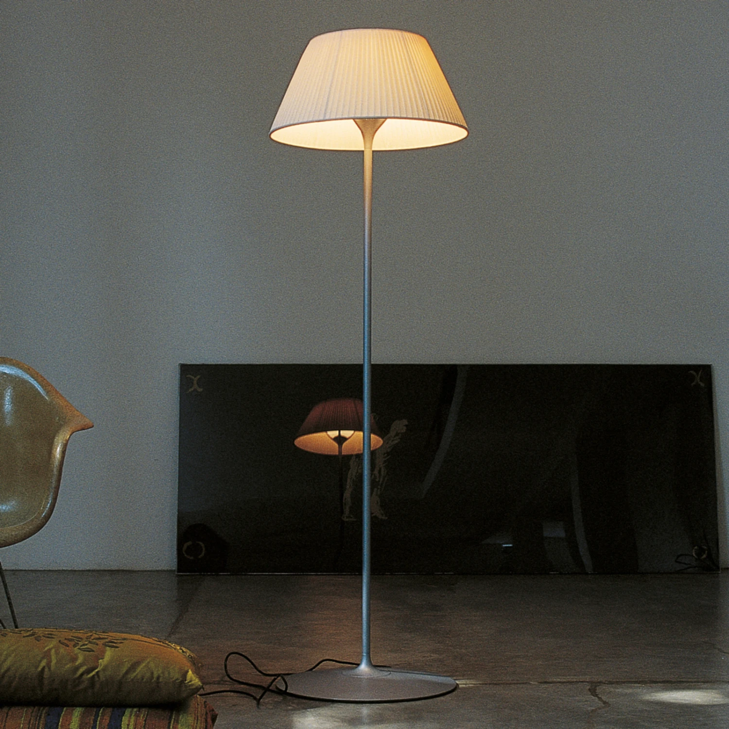 Philippe Starck hat mit der Leuchtenserie Romeo Soft F dem Plisseeschirm, der von vielen mit einem längst vergangenen Trend assoziiert wird, neues Leben eingehaucht. Entstanden im Jahre 1998 kann man diese Stehleuchte mittlerweile auch zu den modernen Klassikern zählen, die wohl nie mehr aus der Mode kommen werden. Der Stoffschirm sieht nicht nur klassisch-gut aus, sondern bringt auch eine wohlig-angenehme Lichtstimmung hervor. Ob modern oder traditionell eingerichtet – die Stehleuchte Romeo Soft F passt sowohl in die designorientierte Wohnung wie auch das traditionell eingerichtete Haus.