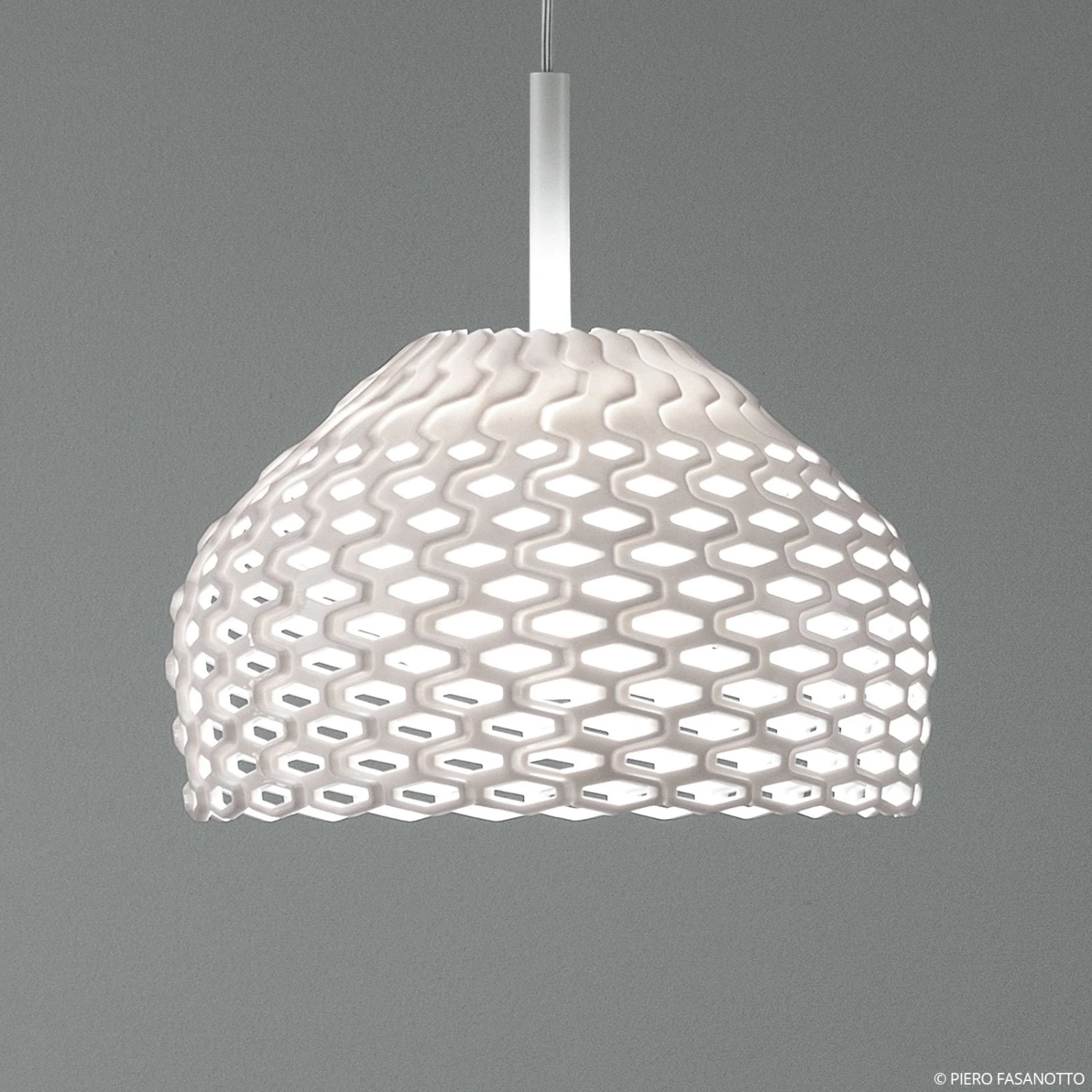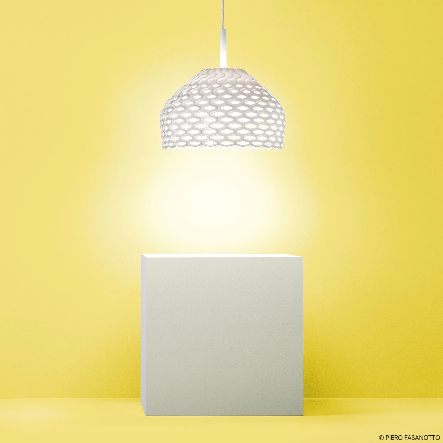 Die Hängeleuchte Tatou der Designerin Patricia Urquiola bietet sich für die effektvolle Ausleuchtung moderner Wohnräume an. Der äußere Kunststoff-Diffusor ist mit vielen kleinen Lichtausschnitten gearbeitet, die durch das abstrahlende Licht des im inneren Diffusor befindlichen Leuchtmittels wirkungsvoll in Szene gesetzt werden, so dass eine unvergleichliche Lichtwirkung entsteht.